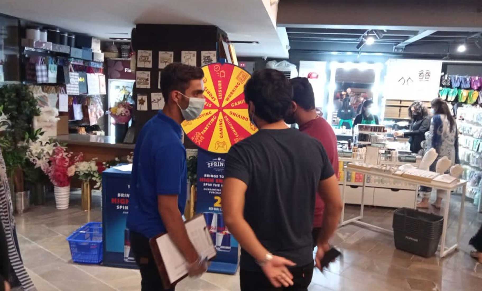 In-store activation was initiated in 26 stores all across Pakistan. The activity was based on equity building for Red bull Racing, where the consumer got to experience the real feel of a pit-stop through a game.